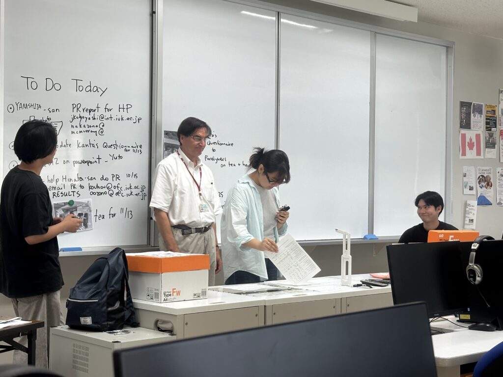 FWと同じ日に俳句チームも活動を計画しています。鴨池公民館で開催されるマクマレイ先生による外国人向けの英語俳句教室の支援です。当日は30人ほどの方が参加される予定です。パワーポイントでスライドを作成し、当日の運営が円滑に進むよう、各自が担当する内容を確認しながら必要な資料をもとに、参加者に楽しみながらも学んでもらえるよう、問題内容やデザインの工夫を行いました。英語俳句を通して日本と海外の異文化交流となる機会になるでしょう。またこの活動についても同様に大園さんからアドバイスをいただきました。私たちが抱えていた問題に対して解決策を提示してくださっただけではなく当日のサポートまで考えてくださいました。ご協力に感謝します。