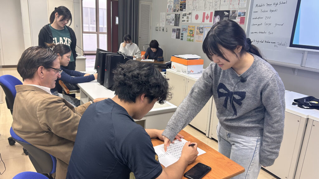 前回の授業の反省として生徒全員に今回学習した単語からスペルチェックを行うようマクマレイ教授から指示がありました。教授は、昨今では話すことばかりが取り上げられていますが、書くことも疎かにしてはいけないと解説していました。