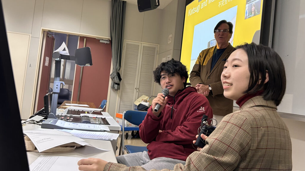 本日の海外インターンシップの授業ではNPO法人での活動を見越して日本の文化である「金継ぎ」と「侘び寂び」についてのパワーポイントを国際文化学部3年生の梶原孝太郎さんとともに英語で発表しました。