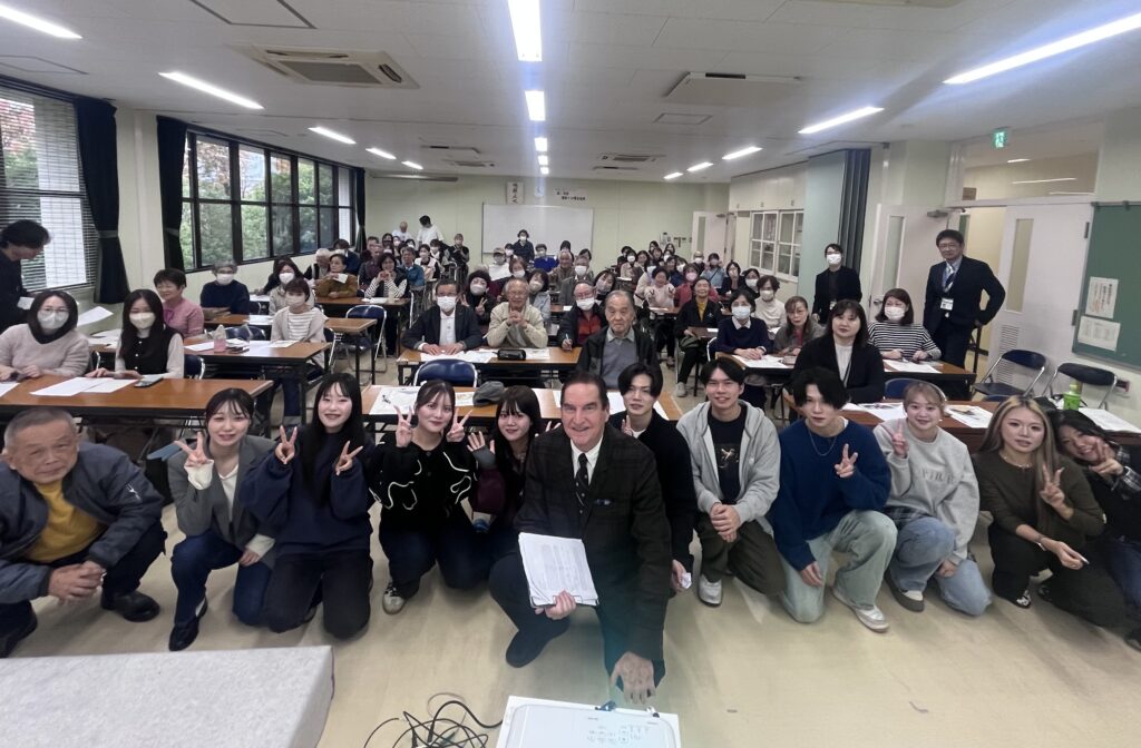 午前は鴨池公民館で「日本人と西洋人の写真俳句」をテーマにマクマレイ先生が講演を行い、その中で私たちゼミ生は俳句クイズを開催しました。講演会には地域の方々も多くご参加くださり、俳句クイズはとても盛り上がりました。また、講演会を先立って4年生の鹿子木さんが空手の板割りを披露してくれました。会場の皆さんも大変喜んでいる様子でした。