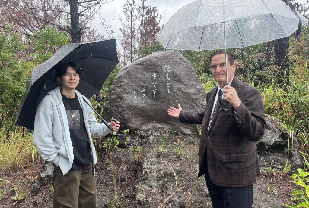 午後は昼食を取ったあと、フェリーに乗り桜島へ行きました。私たちマクマレイゼミでは英語俳句をテーマに活動しており、桜島には、桜島にゆかりのある句碑が多く置かれているため、詩に読まれた桜島の姿を探しながら「俳句ウォーク」を行いました。天気は残念ながら雨でしたが、とても貴重な体験が出来ました。また、桜島で出会った海外観光客との交流もすることができ、マクマレイゼミらしい一日となりました。