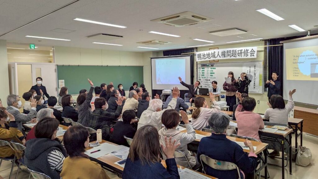 普段は人権問題を中心に学習されている皆さまにご参加いただき、今回は「日本人と西洋人の写真俳句」という、いつもとは少し異なるテーマでの講習となりましたが、参加者の皆さまは熱心に耳を傾けてくださいました。