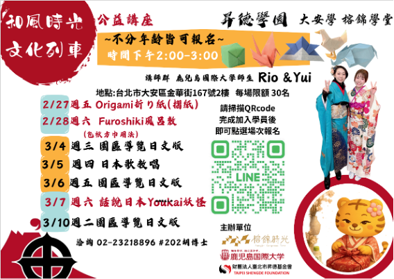 高雄のポスターは高雄師範大学と鹿児島国際大学が俳句共同で開催します。台湾の現地学生にプレゼンテーションで日本文化と国際俳句を紹介したり、ディベートを行ったりして、お互いの文化や台湾の情勢について学ぶ活動が予定されています。