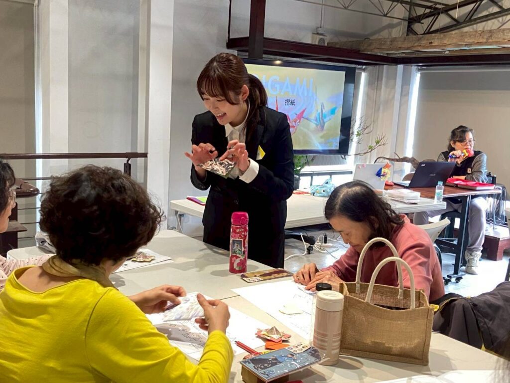 しかしながら、参加者の皆様は非常に温かく、知っている日本語で積極的に話しかけてくださったり、私のことを「先生」と呼んでくださったりと、終始和やかな雰囲気で講義を進めることができた。折り紙体験では、こまを制作し、その後トーナメント形式で回して競い合った。世代を超えて一つの遊びに熱中する姿が印象的で、会場は大いに盛り上がった。文化交流の醍醐味を実感する貴重な時間となった。
