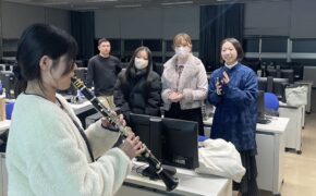 クラリネットの演奏を披露(写真はすべてマクマレイ研究室提供) 第9回12/9(火)の授業で ...